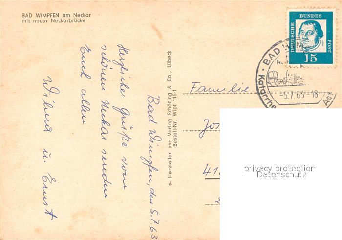 73306711 alte Postkarte Bad Wimpfen Neue Neckarbruecke postalisch gelaufen Erhaltung siehe scans [KathaD81] KatCode: 11110008125007