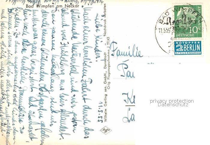 72775145 alte Postkarte Bad Wimpfen Panorama postalisch gelaufen Erhaltung siehe scans [AndreD76] KatCode: 11110008125007