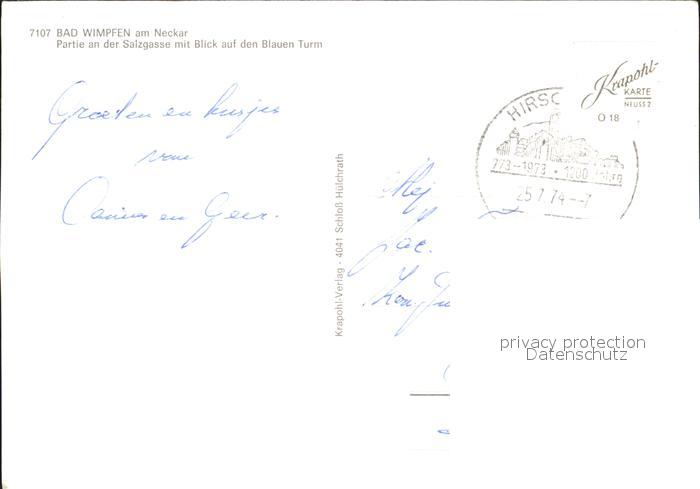 72205663 alte Postkarte Bad Wimpfen Partie an der Salzgasse mit Blauem Turm postalisch gelaufen Erhaltung siehe scans KatCode: 11110008125007