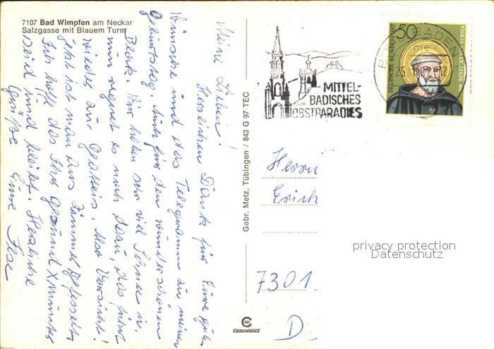 72567113 alte Postkarte Bad Wimpfen Salzgasse mit Blauem Turm Fachwerk postalisch gelaufen Erhaltung siehe scans [LiesaD40] KatCode: 11110008125007