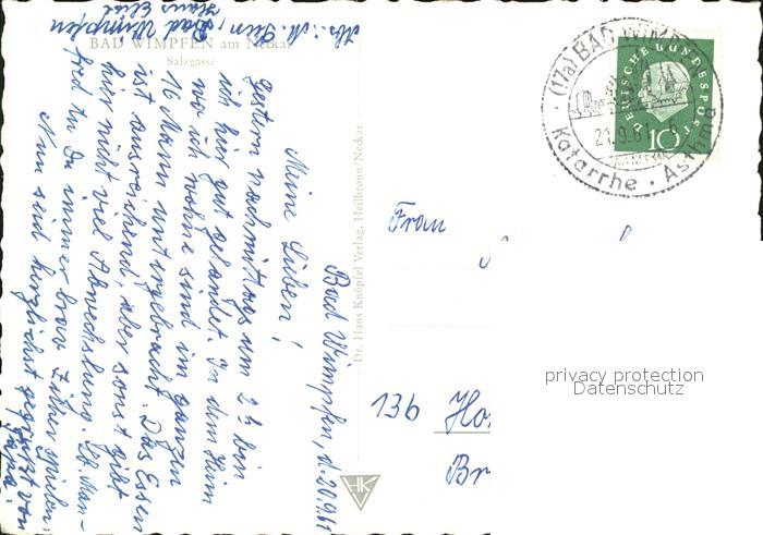 72537632 alte Postkarte Bad Wimpfen Salzgasse postalisch gelaufen Erhaltung siehe scans [AndreD76 kt119box] KatCode: 11110008125007