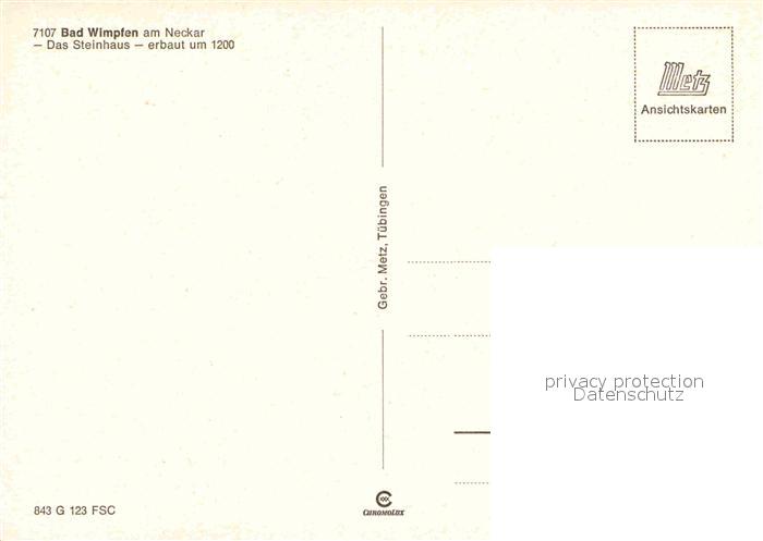 72885826 Bad Wimpfen Steinhaus erbaut um 1200 Historisches Gebaeude postalisch nicht gelaufen Erhaltung siehe scans [FriedD77] KatCode: 11110008125007