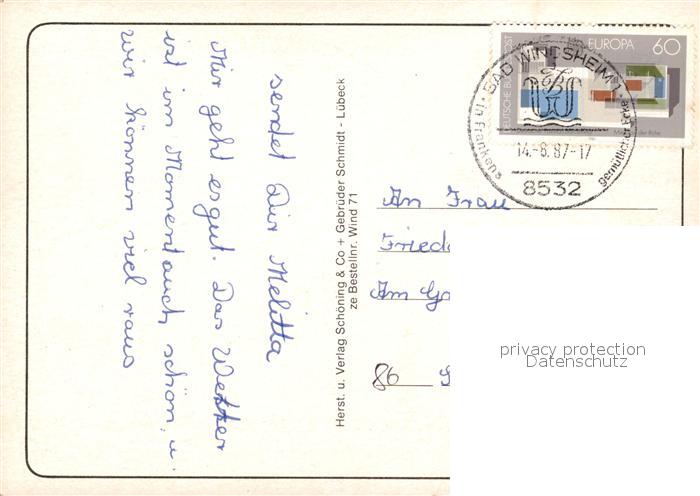 73167307 alte Postkarte Bad Windsheim Alter Winkel Altstadt Fachwerkhaeuser Ehrenmal Kurpark Schoener Brunnen Landschaftspanorama Wappen postalisch gelaufen Erhaltung siehe scans [FriedD77] KatCode: 11110009575112