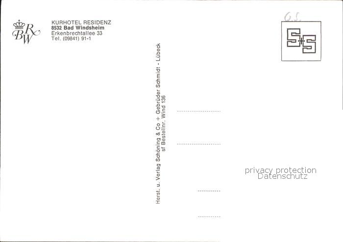 72509853 Bad Windsheim Appartement Kurpark postalisch nicht gelaufen Erhaltung siehe scans KatCode: 11110009575112