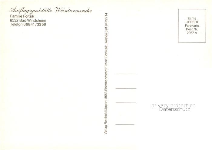 72938103 Bad Windsheim Berggaststaette Weinturmsruhe Brunnen Terrasse Gaststube postalisch nicht gelaufen Erhaltung siehe scans [WerneD78] KatCode: 11110009575112