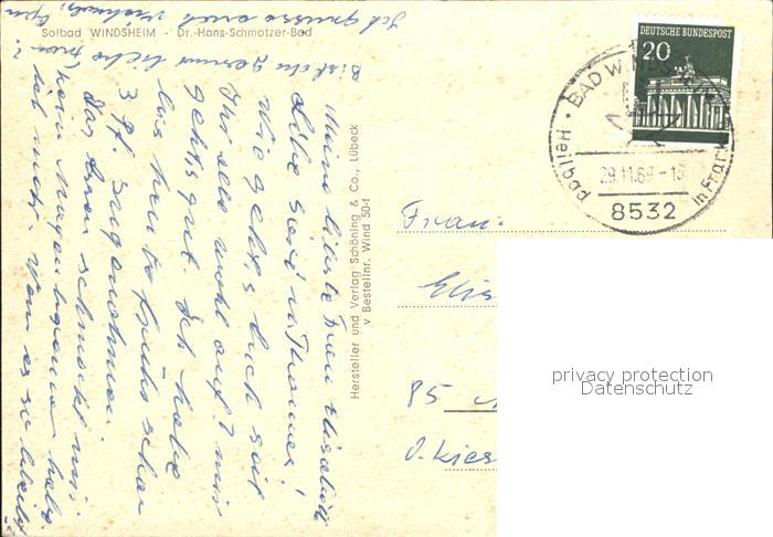 72296529 alte Postkarte Bad Windsheim Dr Hans Schmotzer Bad postalisch gelaufen Erhaltung siehe scans KatCode: 11110009575112