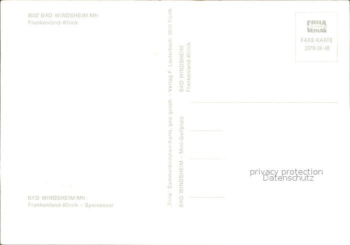 72279917 Bad Windsheim Frankenland Klinik Speisesaal postalisch nicht gelaufen Erhaltung siehe scans KatCode: 11110009575112