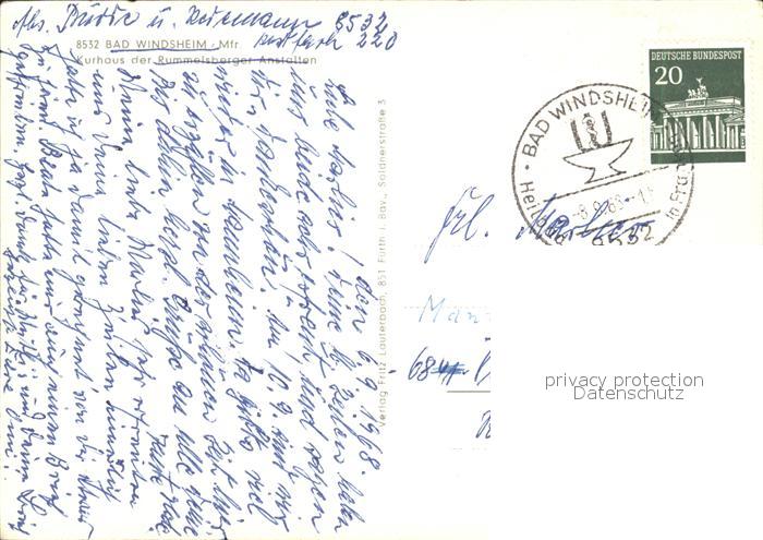 72109720 alte Postkarte Bad Windsheim Kurhaus Fontaene postalisch gelaufen Erhaltung siehe scans KatCode: 11110009575112