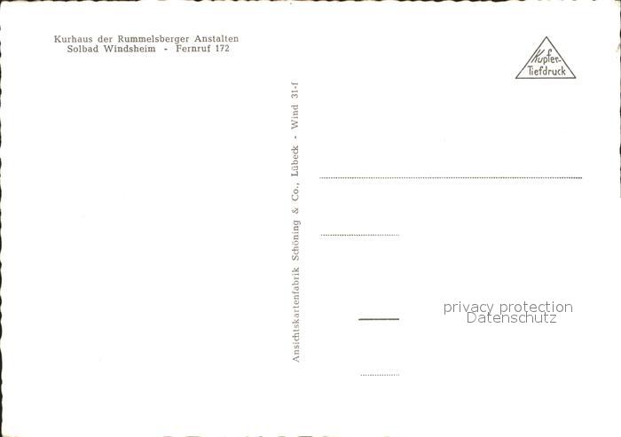 71894634 Bad Windsheim Kurhaus Rummelsberger Anstalten postalisch nicht gelaufen Erhaltung siehe scans KatCode: 11110009575112