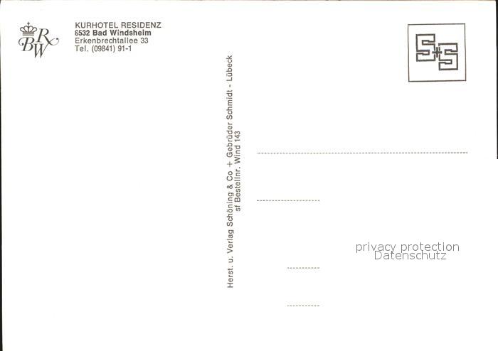 72509856 Bad Windsheim Kurhotel Residenz Restaurant postalisch nicht gelaufen Erhaltung siehe scans KatCode: 11110009575112