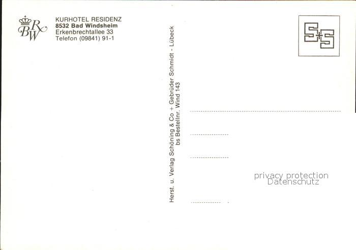 72543778 Bad Windsheim Kurhotel Residenz postalisch nicht gelaufen Erhaltung siehe scans [LiesaD40 kv019box] KatCode: 11110009575112