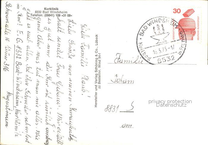 72411786 alte Postkarte Bad Windsheim Kurklinik postalisch gelaufen Erhaltung siehe scans KatCode: 11110009575112