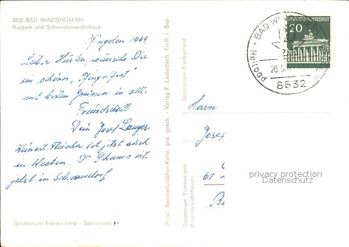 72257732 alte Postkarte Bad Windsheim Kurpark und Schwesternwohnhaus postalisch gelaufen Erhaltung siehe scans KatCode: 11110009575112