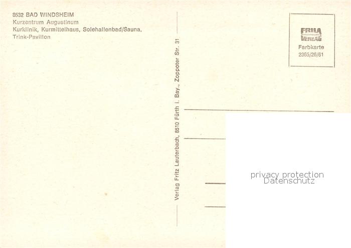 73251727 Bad Windsheim Kurzentrum Augustinum Kurklinik Kurmittelhaus Trinkpavillon postalisch nicht gelaufen Erhaltung siehe scans [KathaD81] KatCode: 11110009575112