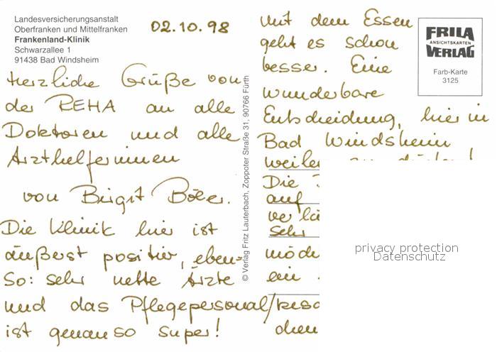 72751233 Bad Windsheim LVA Frankenland Klinik postalisch nicht gelaufen Erhaltung siehe scans [LiesaD40] KatCode: 11110009575112