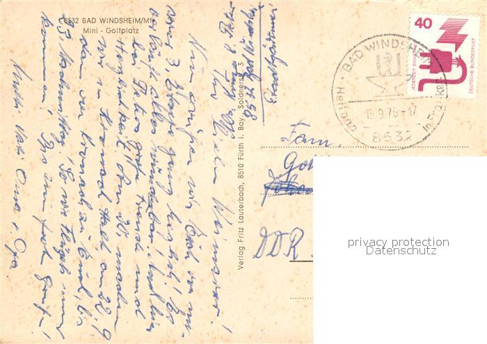 73011134 alte Postkarte Bad Windsheim Mini Golfplatz postalisch gelaufen Erhaltung siehe scans [WerneD78] KatCode: 11110009575112