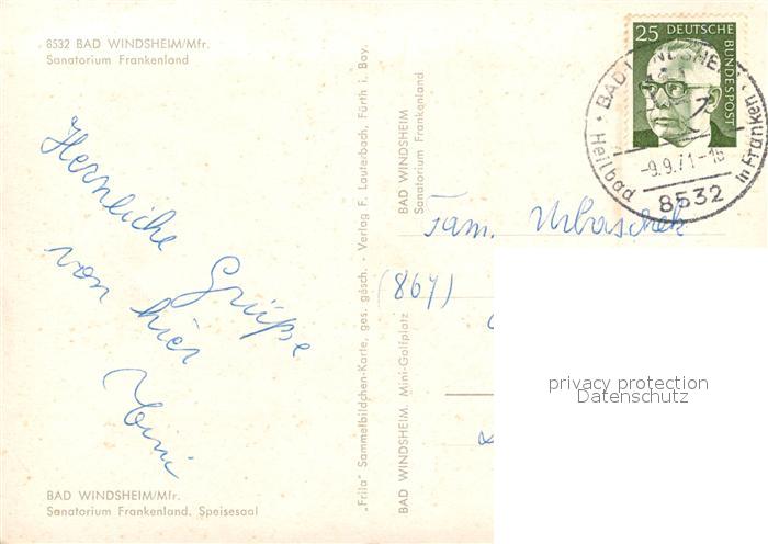 72938182 alte Postkarte Bad Windsheim Sanatorium Frankenland postalisch gelaufen Erhaltung siehe scans [WerneD78] KatCode: 11110009575112