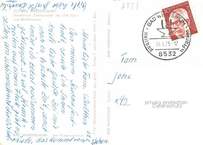 72751866 alte Postkarte Bad Windsheim Sanatorium Frankenland postalisch gelaufen Erhaltung siehe scans [KathaD81] KatCode: 11110009575112
