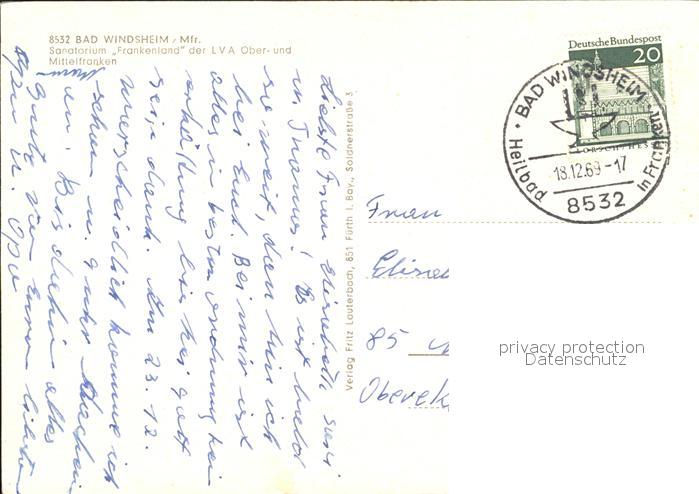 72291208 alte Postkarte Bad Windsheim Sanatorium Frankenland postalisch gelaufen Erhaltung siehe scans KatCode: 11110009575112