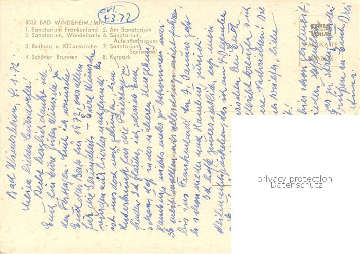 73130177 Bad Windsheim Sanatorium Frankenland Rathaus Kilianskirche postalisch nicht gelaufen Erhaltung siehe scans [PaolaD17] KatCode: 11110009575112