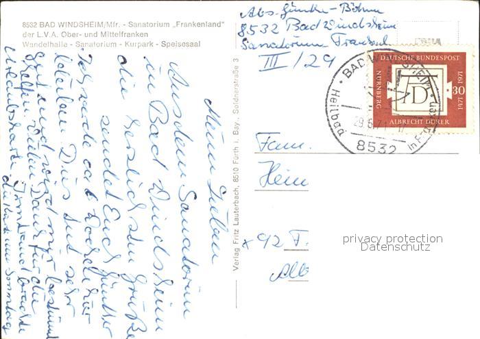 72304856 alte Postkarte Bad Windsheim Sanatorium Frankenland Wandelhalle Kurpark Speisesaal postalisch gelaufen Erhaltung siehe scans KatCode: 11110009575112