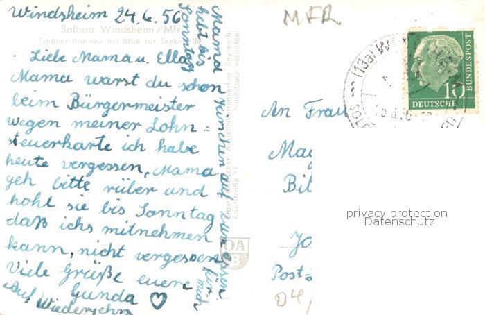 73758699 alte Postkarte Bad Windsheim Schoener Brunnen mit Seekapelle postalisch gelaufen Erhaltung siehe scans [FriedD77] KatCode: 11110009575112