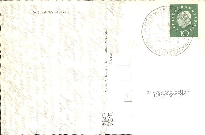 72161546 alte Postkarte Bad Windsheim Schoener Brunnen Rothenburger Strasse Alter Winkel Heimatmuseum Rathaus Kurhaus Wappen postalisch gelaufen Erhaltung siehe scans KatCode: 11110009575112