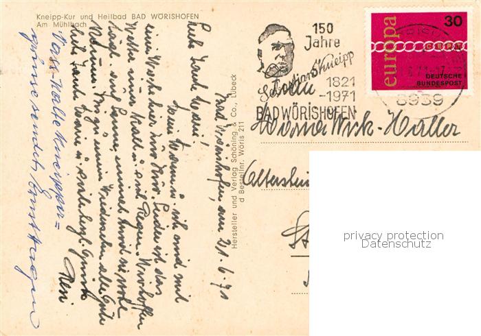 74052385 alte Postkarte Bad Woerishofen Am Muehlbach postalisch gelaufen Erhaltung siehe scans [WerneD78] KatCode: 11110009778116