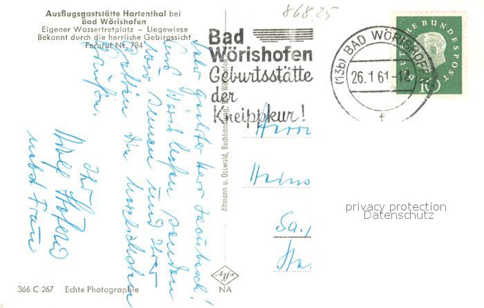 33658362 alte Postkarte Bad Woerishofen Ausflugsgaststaette Hartenthal postalisch gelaufen Erhaltung siehe scans [WerneD78] KatCode: 11110009778116