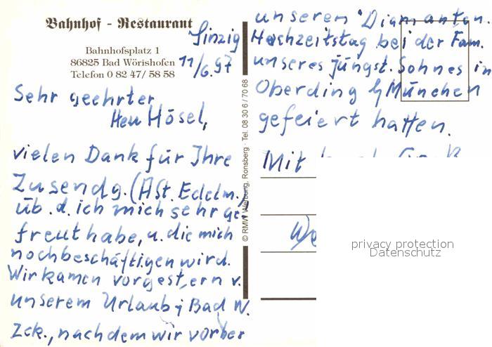 72716888 Bad Woerishofen Bahnhof Restaurant postalisch nicht gelaufen Erhaltung siehe scans [FriedD77] KatCode: 11110009778116