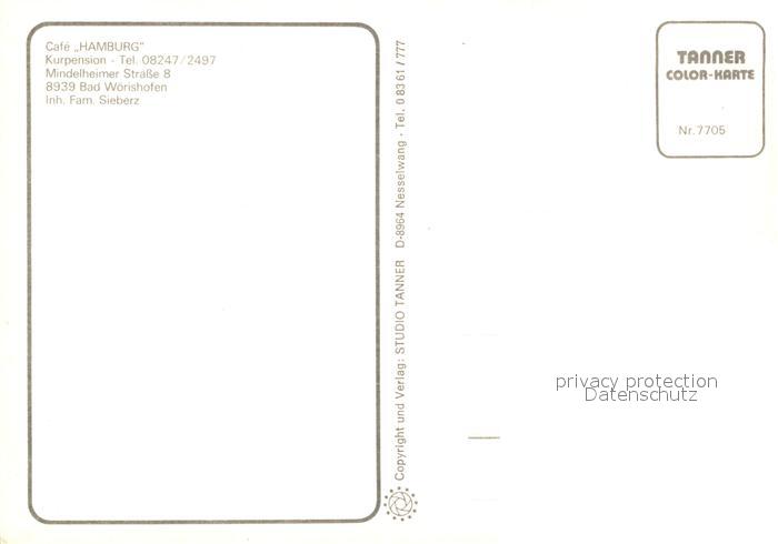 73047506 Bad Woerishofen Cafe Hamburg Terrasse postalisch nicht gelaufen Erhaltung siehe scans [WerneD78] KatCode: 11110009778116