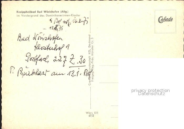 71934198 Bad Woerishofen Dominikanerinnen Kloster postalisch nicht gelaufen KatCode: 11110009778116