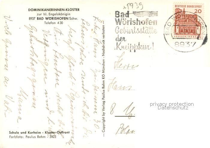 73661333 alte Postkarte Bad Woerishofen Dominikanerinnen Kloster zur hl. Engelskoenigin Schule und Kurheim postalisch gelaufen Erhaltung siehe scans [FriedD77] KatCode: 11110009778116