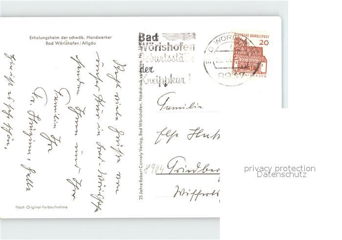 72302102 alte Postkarte Bad Woerishofen Erholungsheim der schwaebischen Handwerker postalisch gelaufen Erhaltung siehe scans KatCode: 11110009778116