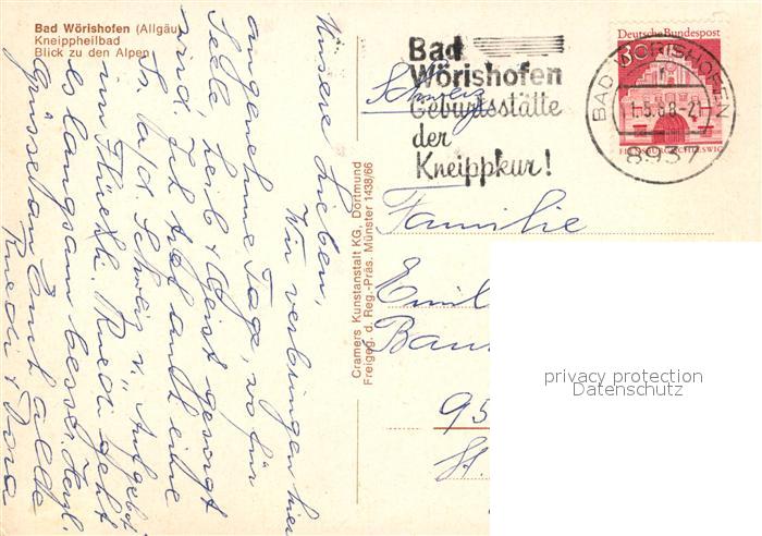 73077034 alte Postkarte Bad Woerishofen Fliegeraufnahme postalisch gelaufen Erhaltung siehe scans [KathaD81] KatCode: 11110009778116