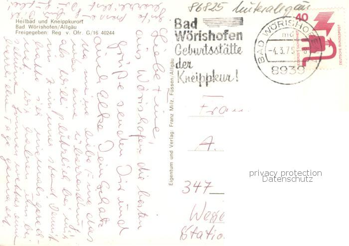 73765900 alte Postkarte Bad Woerishofen Fliegeraufnahme postalisch gelaufen Erhaltung siehe scans [FriedD77] KatCode: 11110009778116
