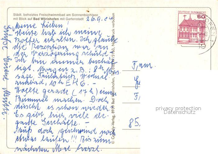 73204105 alte Postkarte Bad Woerishofen Fliegeraufnahme Freischwimmbad postalisch gelaufen Erhaltung siehe scans [NatalD47] KatCode: 11110009778116