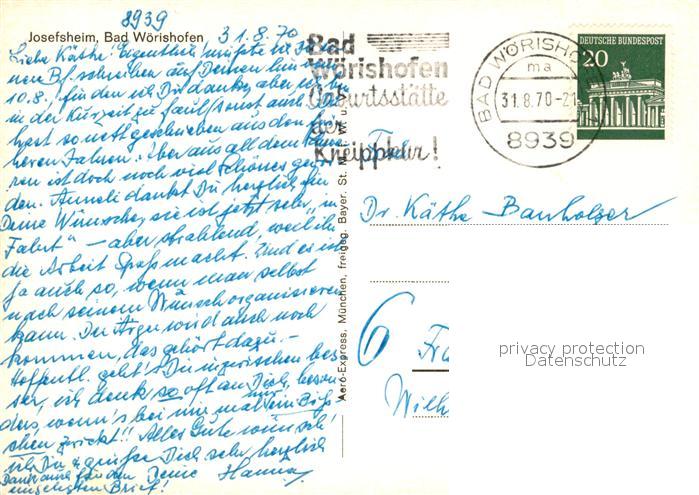73173235 alte Postkarte Bad Woerishofen Fliegeraufnahme Josefsheim postalisch gelaufen Erhaltung siehe scans [LiesaD40] KatCode: 11110009778116