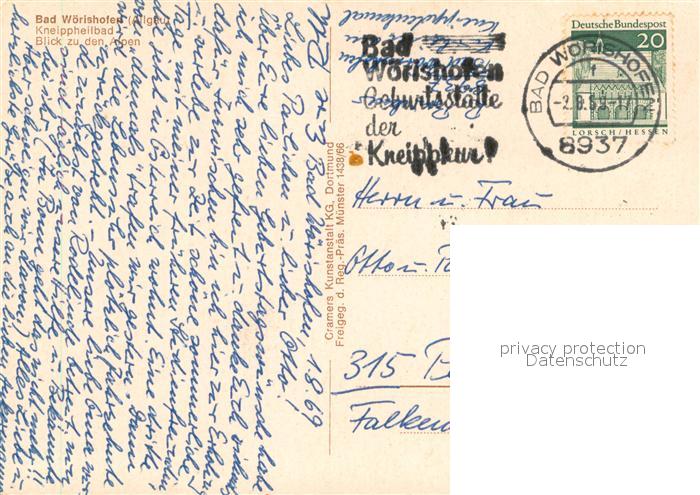 73656377 alte Postkarte Bad Woerishofen Fliegeraufnahme mit Alpenblick postalisch gelaufen Erhaltung siehe scans [WerneD78] KatCode: 11110009778116