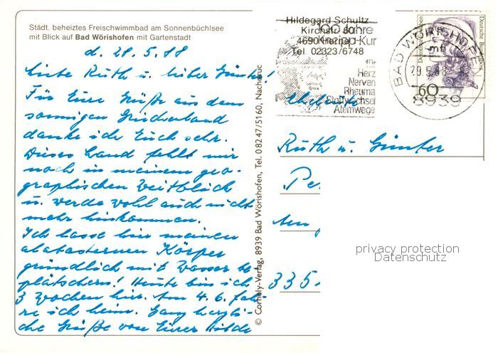 73836451 alte Postkarte Bad Woerishofen Fliegeraufnahme mit Schwimmbad postalisch gelaufen Erhaltung siehe scans [FriedD77] KatCode: 11110009778116