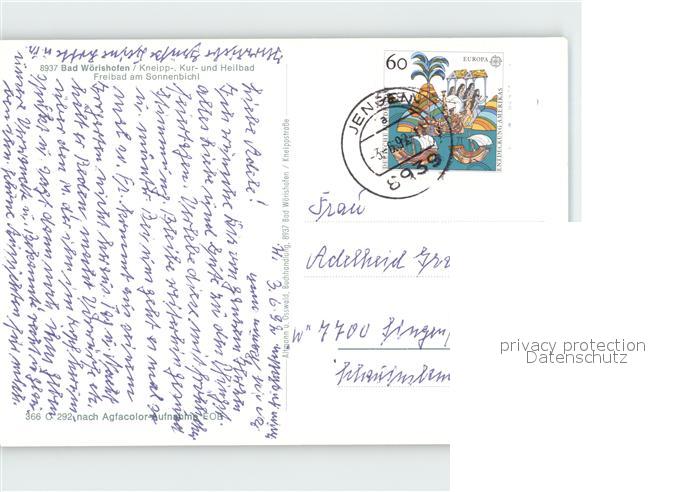 72256910 alte Postkarte Bad Woerishofen Freibad am Sonnenbichl postalisch gelaufen Erhaltung siehe scans KatCode: 11110009778116