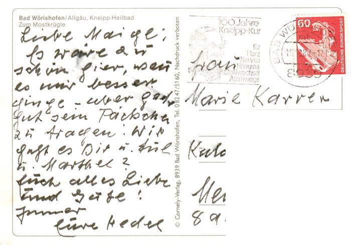 73887850 alte Postkarte Bad Woerishofen Gasthaus Mostkruegle Freiterrasse postalisch gelaufen Erhaltung siehe scans [FriedD77] KatCode: 11110009778116