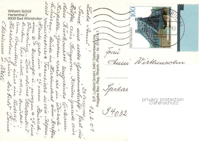 73711756 alte Postkarte Bad Woerishofen Gasthaus Wilhelm Schuell Fliegeraufnahme postalisch gelaufen Erhaltung siehe scans [WerneD78] KatCode: 11110009778116