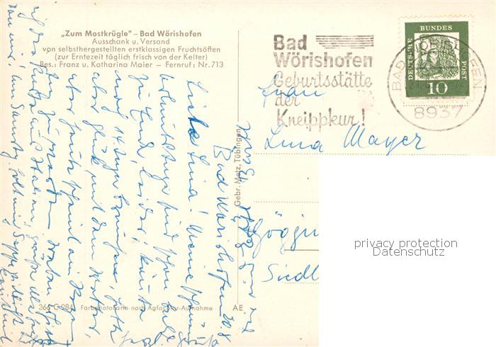 73800955 alte Postkarte Bad Woerishofen Gasthaus Zum Mostkruegle Terrasse postalisch gelaufen Erhaltung siehe scans [WerneD78] KatCode: 11110009778116