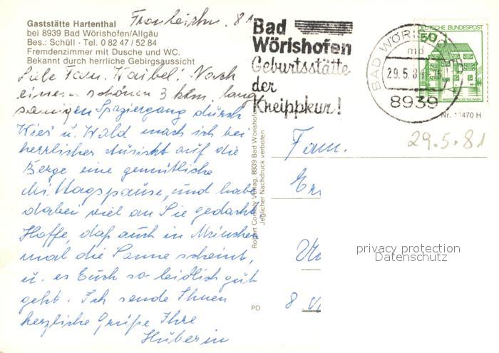 73152513 alte Postkarte Bad Woerishofen Gaststaette Hartenthal Alpenpanorama postalisch gelaufen Erhaltung siehe scans [FriedD77] KatCode: 11110009778116