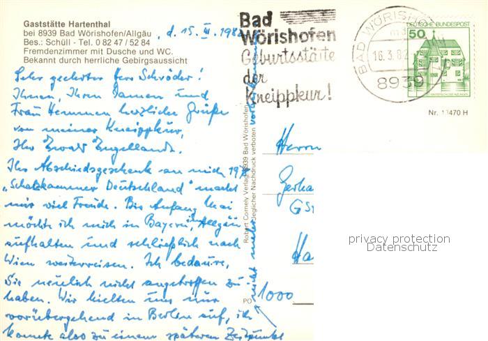 73843649 alte Postkarte Bad Woerishofen Gaststaette Hartenthal Freiterrasse Panorama mit Wettersteingebirge postalisch gelaufen Erhaltung siehe scans [WerneD78] KatCode: 11110009778116