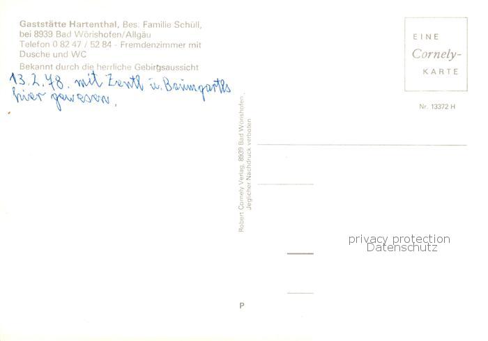 73845204 Bad Woerishofen Gaststaette Hartenthal Gaststube postalisch nicht gelaufen Erhaltung siehe scans [WerneD78] KatCode: 11110009778116