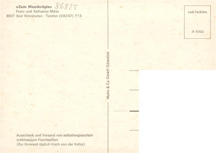 73895287 Bad Woerishofen Gaststaette Zum Mostkruegle postalisch nicht gelaufen Erhaltung siehe scans [WerneD78] KatCode: 11110009778116