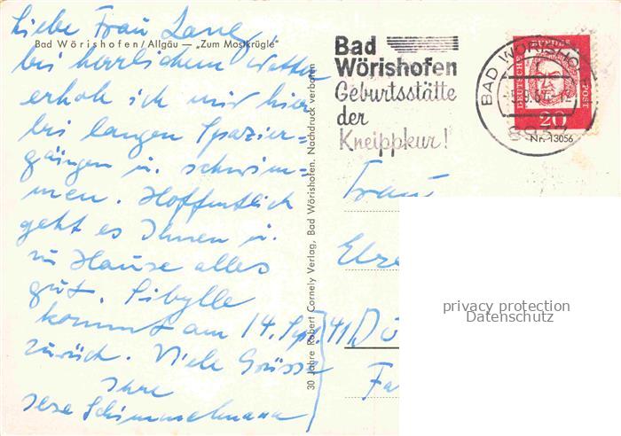 74028130 alte Postkarte BAD WoeRISHOFEN Gaststaette Zum Mostkruegle Gartenterrasse postalisch gelaufen Erhaltung siehe scans [FriedD77] KatCode: 11110009778116