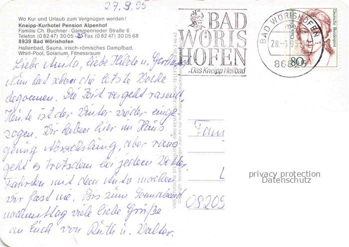 74042535 alte Postkarte BAD WoeRISHOFEN Hallenbad Fitnessraum Ruheraum postalisch gelaufen Erhaltung siehe scans [WerneD78] KatCode: 11110009778116